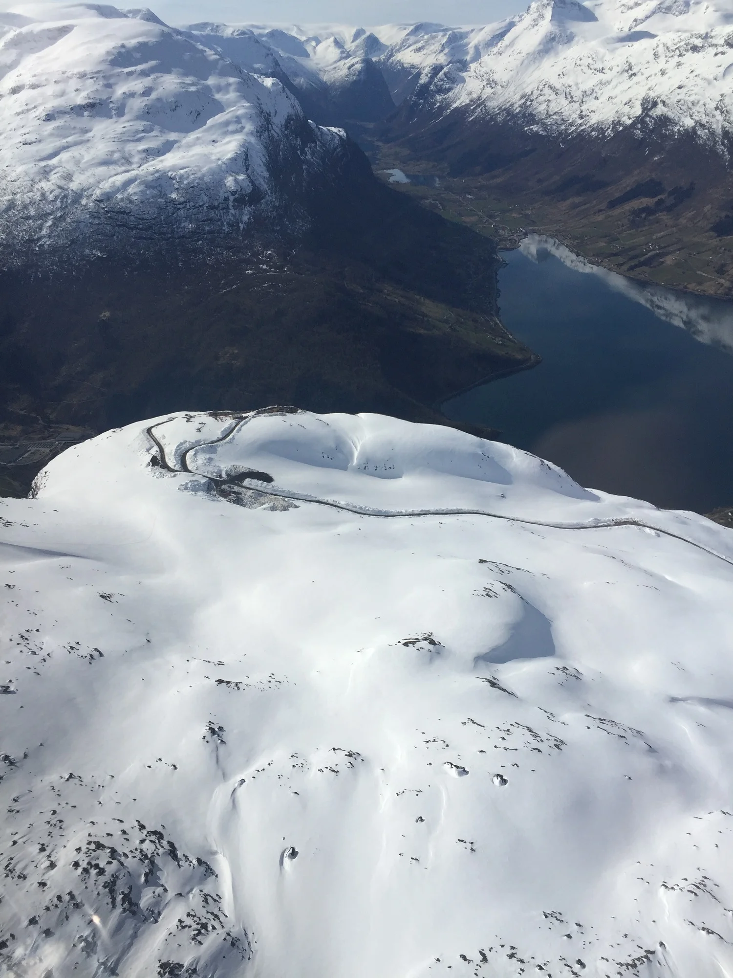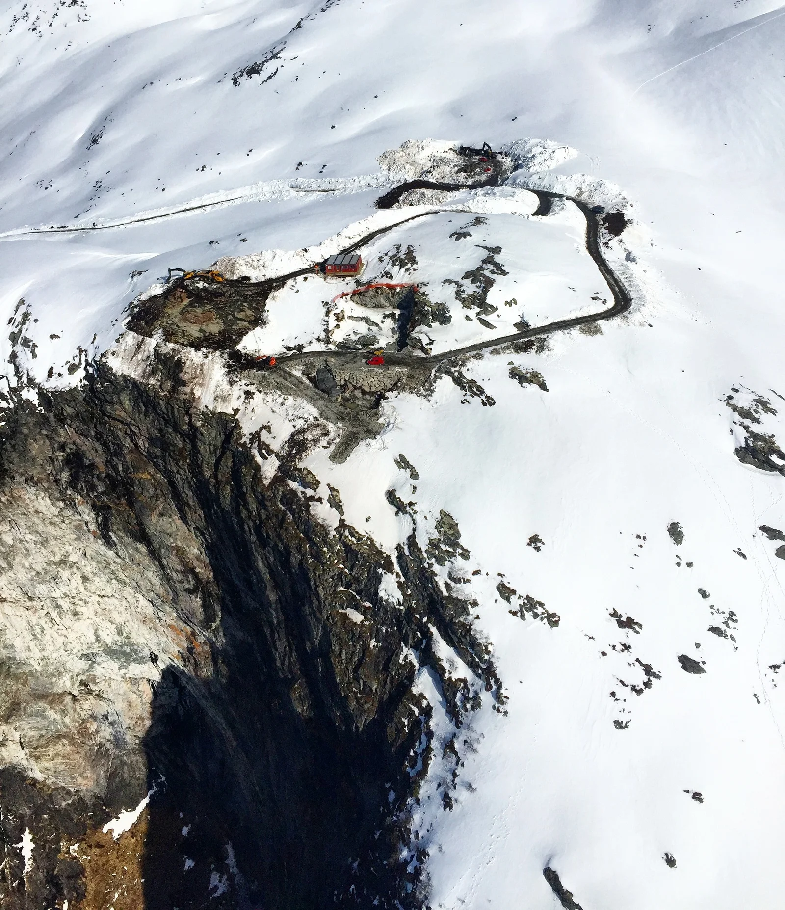 På kanten av stupet. Arbeidsforholda kan vel kallast luftige her oppe.