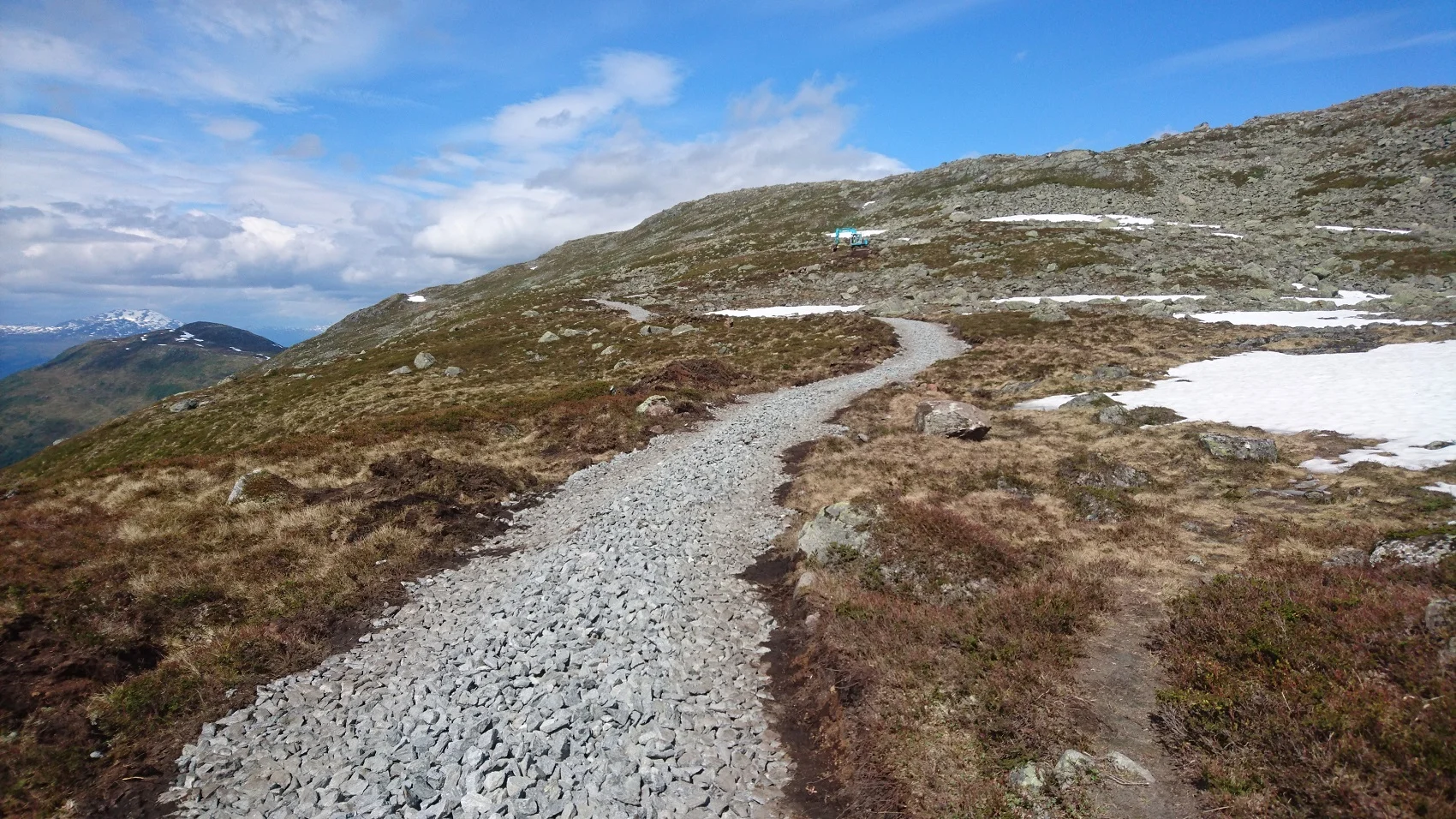 Melkevoll Maskin har starta på arbeidet med grussti mot Skredfjellet.