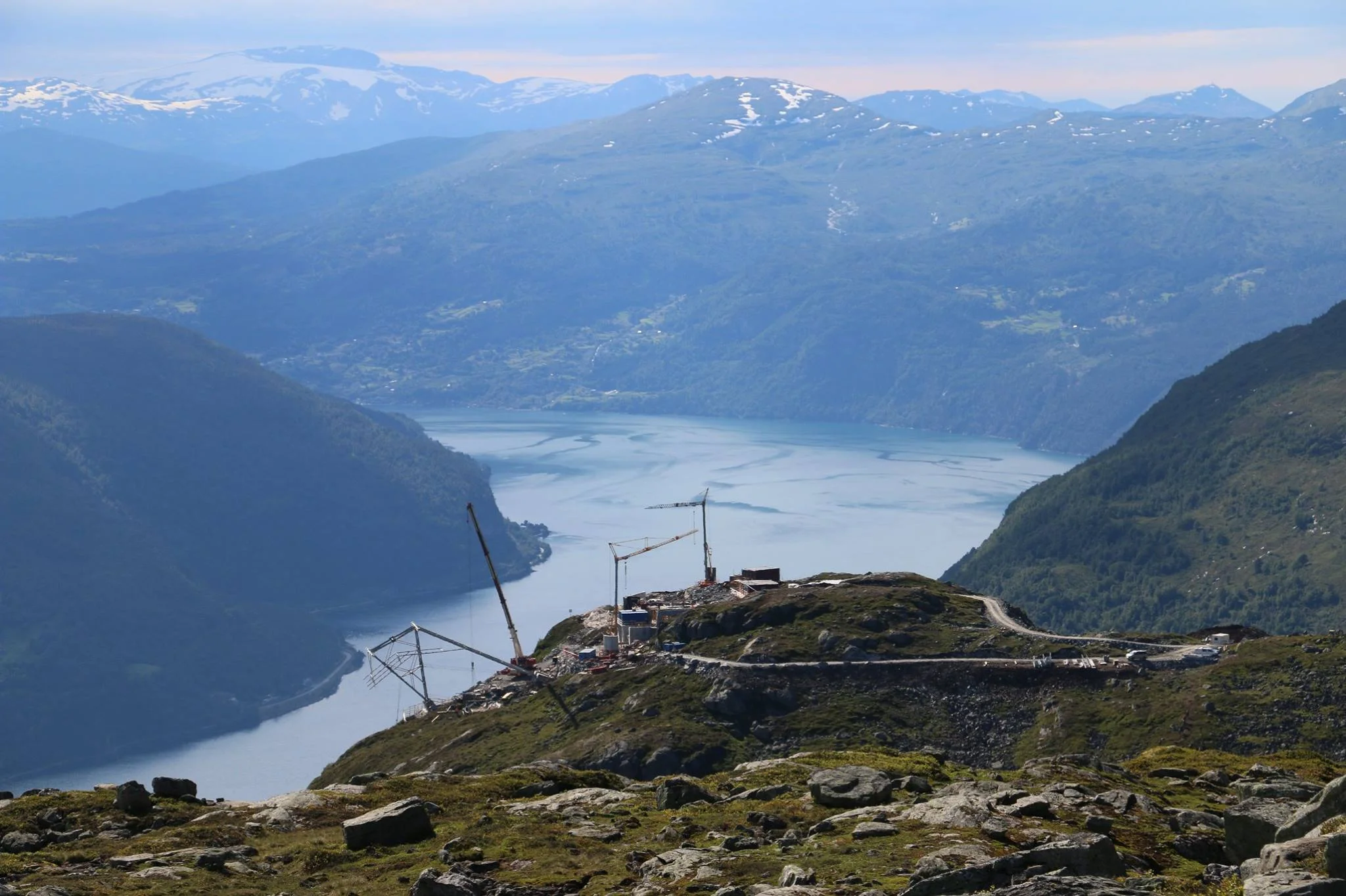 Utsikta frå Lofjellet og fjellområdet bak Hoven er flott, og viser prosjektet frå ein litt annan vinkel enn vi vanlegvis ser det. Og for ein nydeleg dag! Alle foto er tekne av Per Helge Bø/Naturservice.